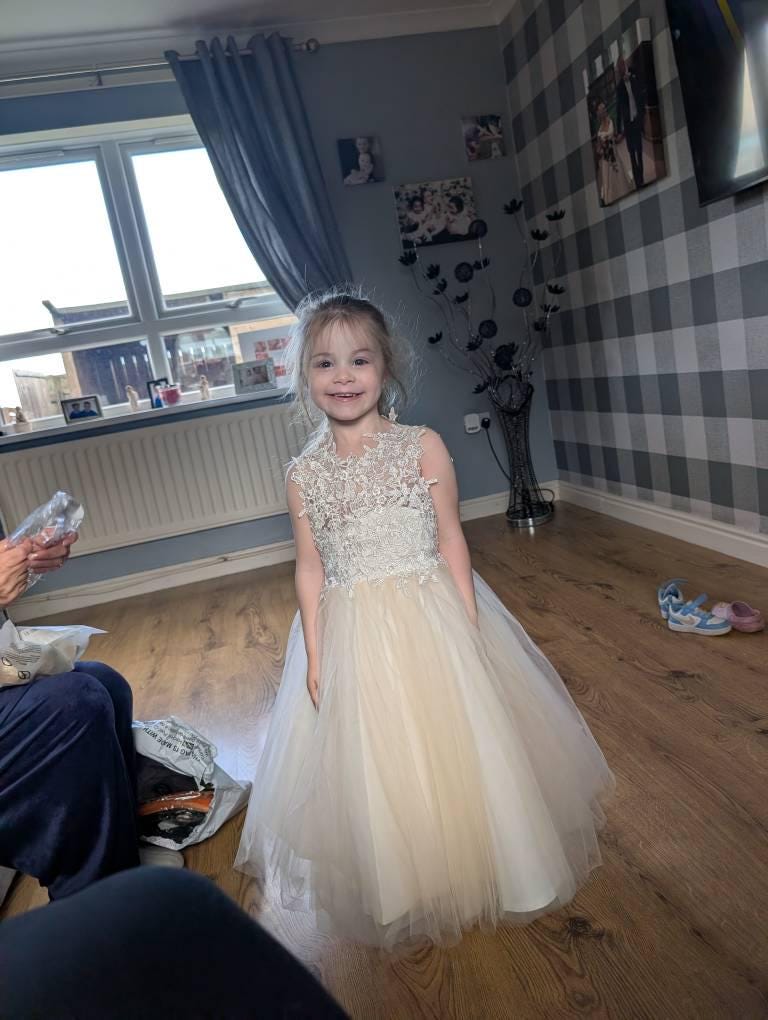 A beautifully handmade dress designed for little girls to shine! Perfect for flower girls, bridesmaids, christenings, special occasions—or even as a magical dress-up outfit.